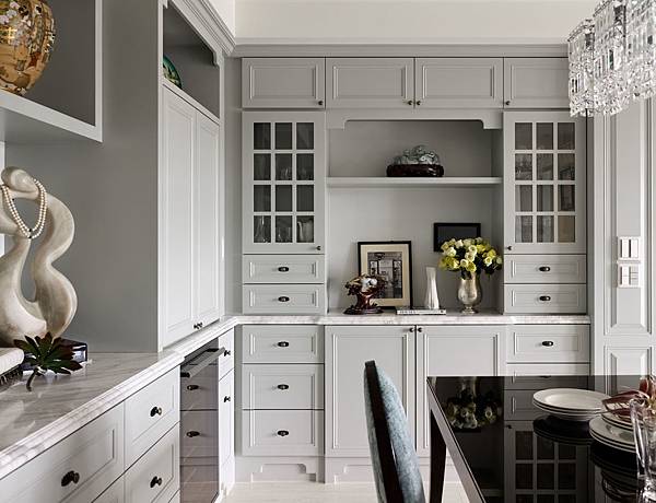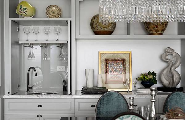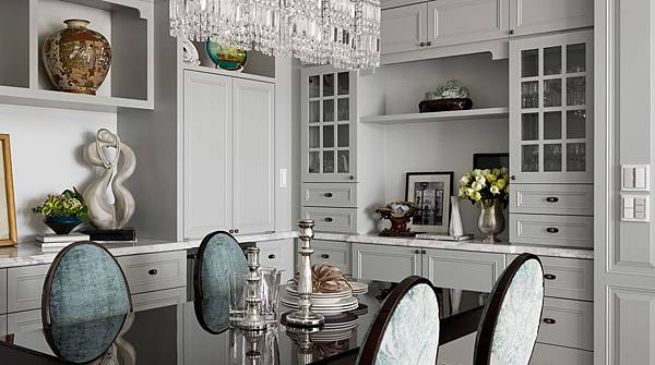 杯盤或是放置櫃體或是透明陳列,另有層板空間可以擺放瓷器、杯盤、雕塑品、花器等等。