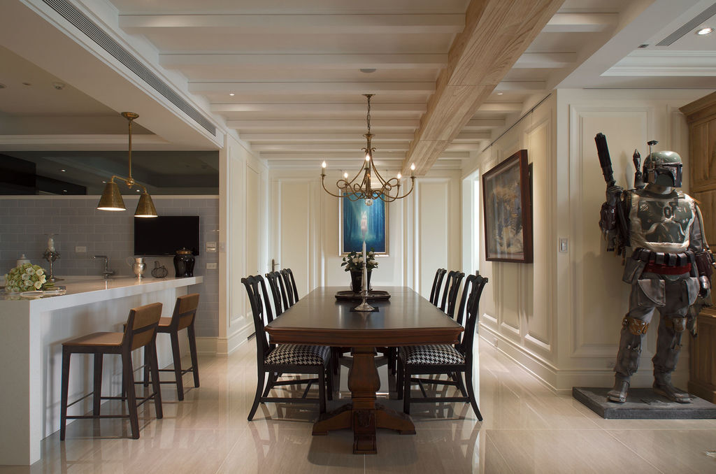 趁著換到這間100坪大宅,屋主期待將自己心愛的元素,成為 Expanded Universe 的原力,建立一個自己的古典新帝國。