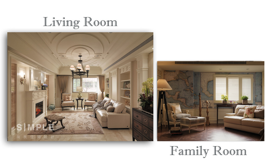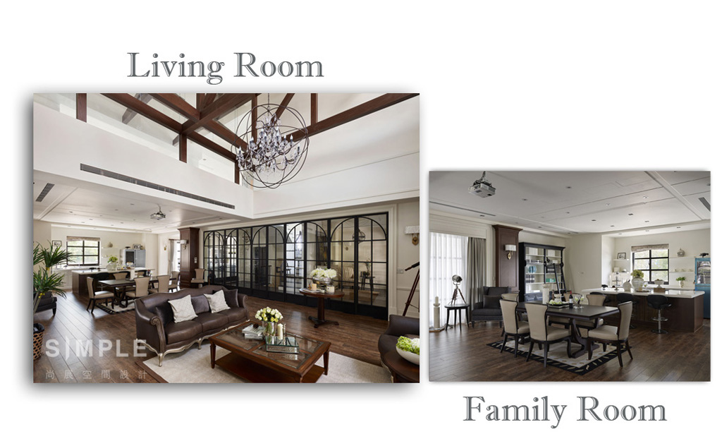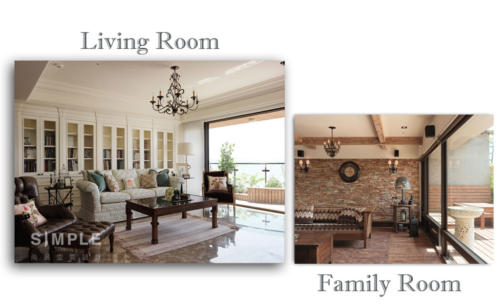 喜愛西洋電影或經常關注歐美居家設計趨勢的美式居家迷,一定會注意到歐美地區的度假別墅或豪宅設計當中,經常出現兩個客廳的設計呢?如果你曾經以為空間坪數太大所以設計兩個客廳,那可不能再錯過本篇報導~~ 從歷史研究的視野,獨家研發出正統歐美居家設計學的尚展設計吳啟民總監表示,在歐美大宅當中兩個看起來都像是「客廳」的空間,其實分別代表「客廳( Living Room )」與「起居室( Family Room )」兩種不同的空間定義,除了功能取向不同,在設計手法跟美感風格上也會有差相當的差異。