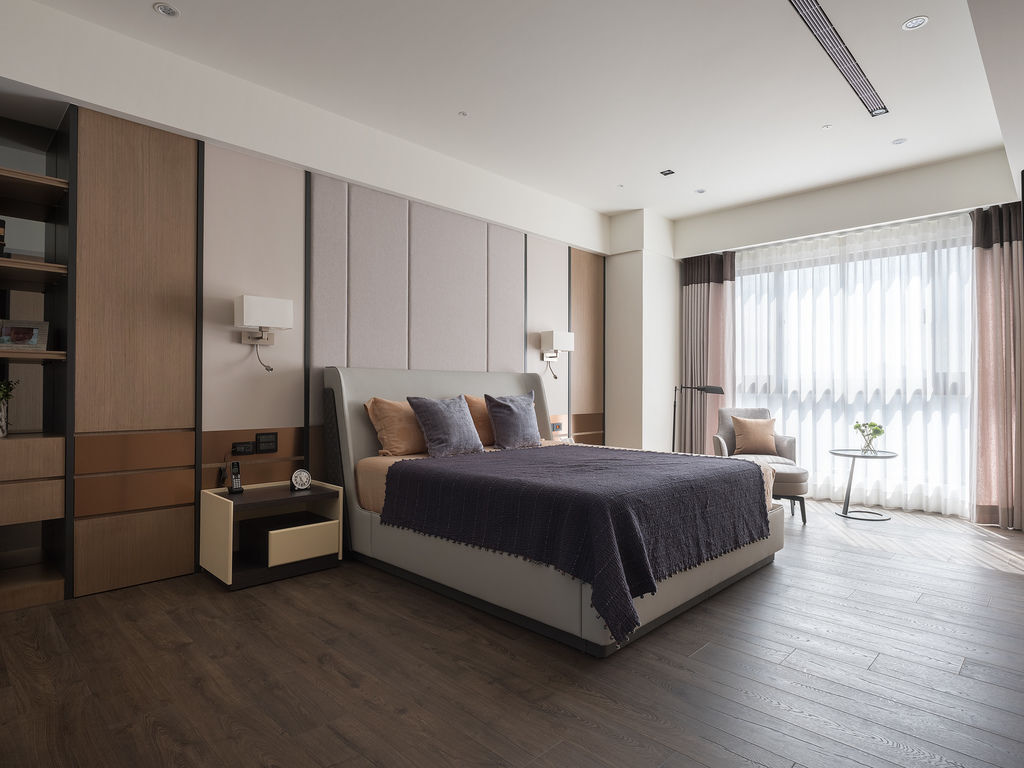 主臥房作為男女主人的私領域空間,除了兼具休憩睡眠機能,也運用空間中的窗邊角落達成互動意義,創造一個多功能角落。