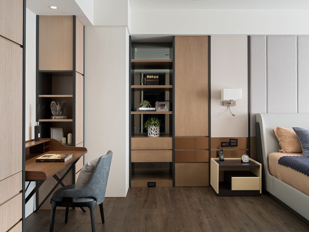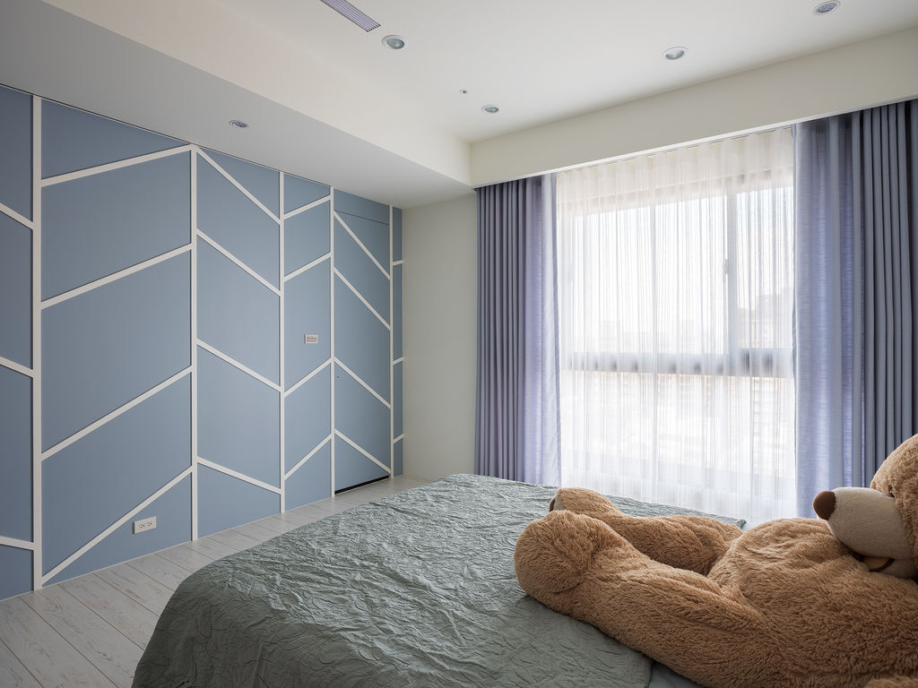兩間小孩房,都預先規劃很大的收納空間,採取比較中性的設計,為很快就來臨的青少年期做準備,不管孩子發展出什麼樣的個人喜好,只要更換少許軟裝,就能換上新風貌,目前孩子已經愛上自己的小天地,在專屬的空間裡彈琴、畫圖,安心成長。