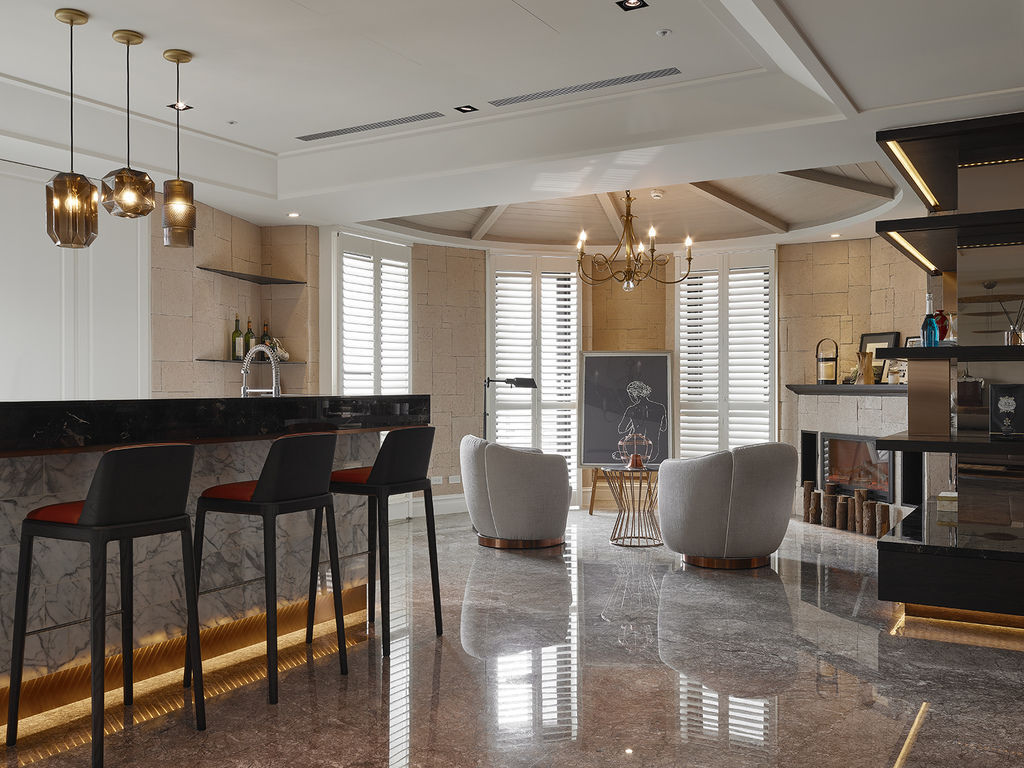 180坪的美式奢華大宅,藉著動線格局的分劃,讓各場域獨立卻可相互對話,設計師串起了單層平面中的美好連結,從有形到無形,在住宅的每個角落持續發酵。