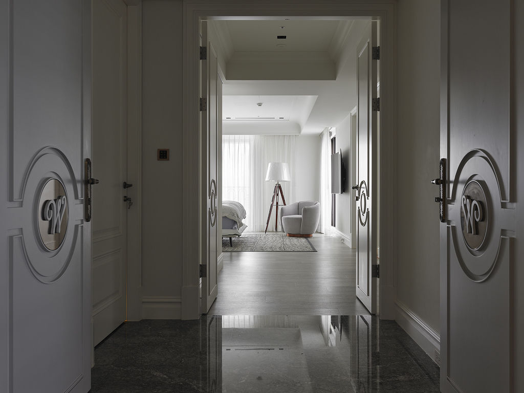 特別設計的W家徽,是屋主姓氏-王的縮寫,守護著屋主一手建構的王朝,推開這扇門,是主臥室以及女兒臥室,鄰近卻各擁有隱私空間。