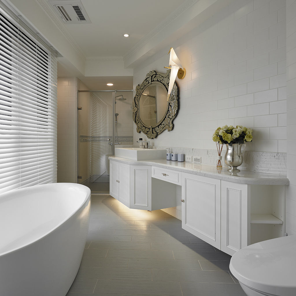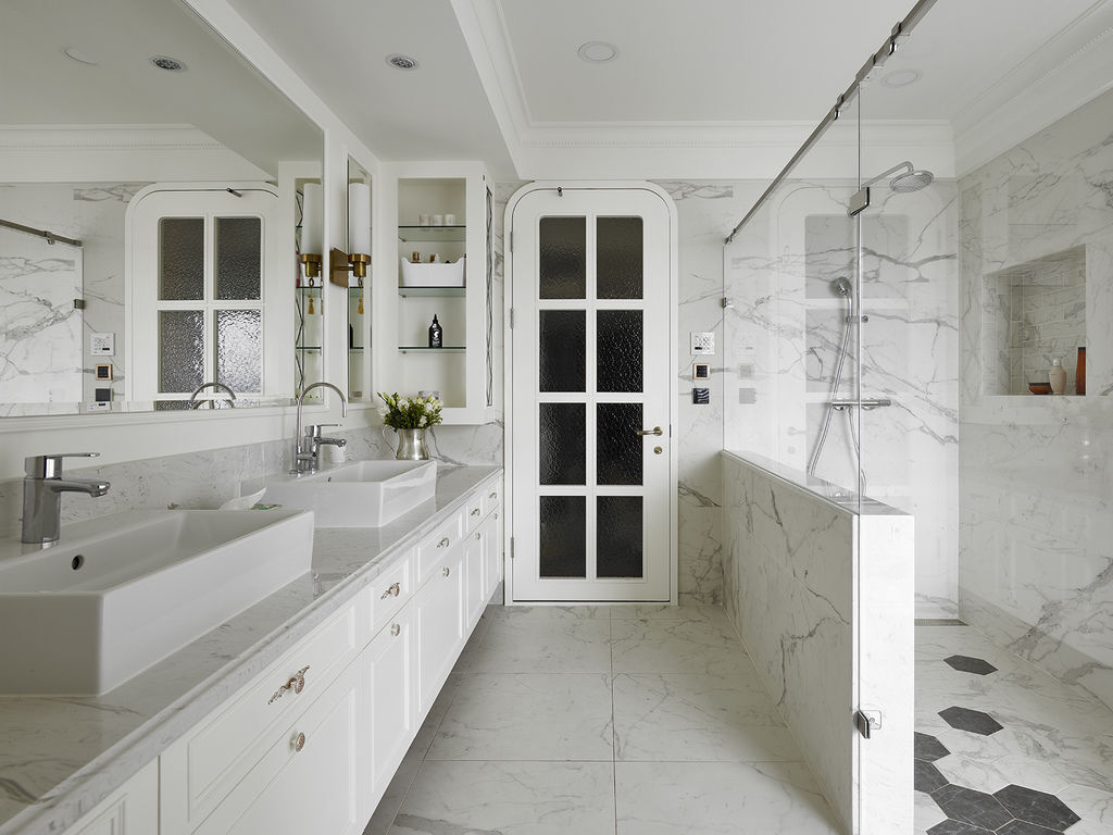 除了威尼斯鏡點綴一抹奢華,所有設施皆以純白美學施作,掌握舒適耐用卻不退流行的原則,打造出值得傳家的美式奢華好宅邸。