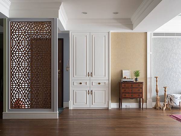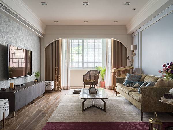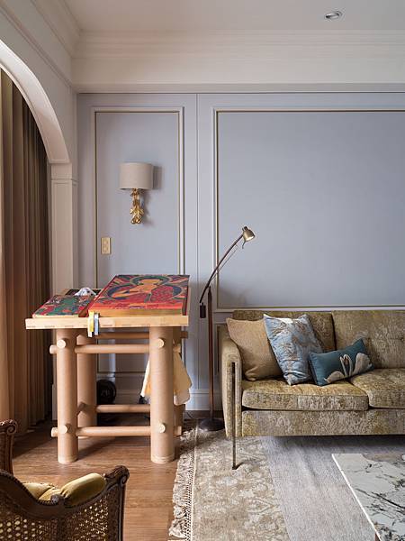 當初討論的時候,深入瞭解屋主希望融入的多國元素,最適合的基調仍是美式古典,歐洲風的圓拱門搭配金屬勾邊的美式線板,就像一方高質感的畫布,能添上其他異國元素,恰好也見證了十八世紀起,西方文化開始進入東方,開始了越洋的交流,南洋風的東方家具,陳設在英式風情的場景,就能創造出日不落時期的貴族渡假風情。
