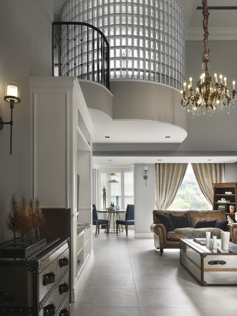 已經有過合作的默契,尚展設計與業主的溝通很有效率的達成共識-利用宅邸的挑高特色,營造出美式景觀宅。